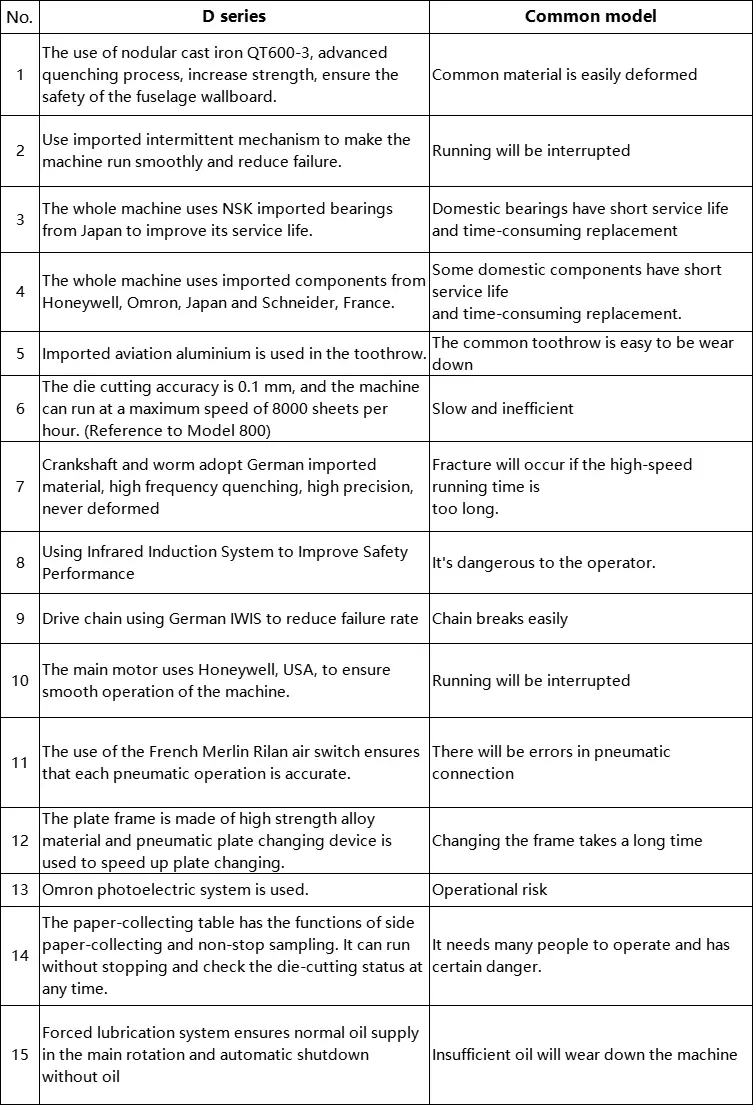 * Korzystanie z zaawansowanego silnika głównego Honeywell (Opcjonalna konfiguracja), prędkość cięcia matrycy może osiągnąć 7500 arkuszyna godzinę.